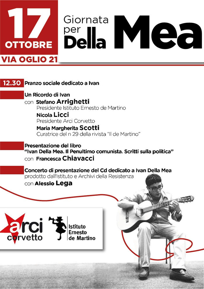 Il 16 ottobre 2021 Ivan Della Mea avrebbe compiuto 81 anni e Circolo ARCI CORVETTO, che ha fondato e del quale è stato presidente per diversi anni, ha voluto ricordarlo con una Giornata a lui dedicata